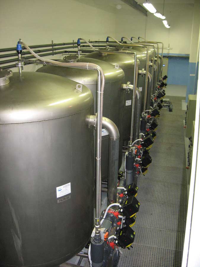 Filtrační náplně jsou převážně vodárenský písek a písek s manganovou preparací pro nitrifikační filtraci.